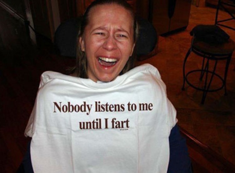 Keep that fart bomb in, or at the very least wait till you’re out of the shop, woman!