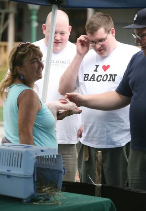 You wouldn’t think there’s anything wrong with this photo at first glance, yet the man’s clothing could make you laugh.You could even agree with him! After all, bacon is one of the most popular breakfast meals, so why not? But first, take a good look. Suddenly, the amusing t-shirt takes a scary turn. Seriously, why would you wear a shirt like that to a pig petting zoo?
