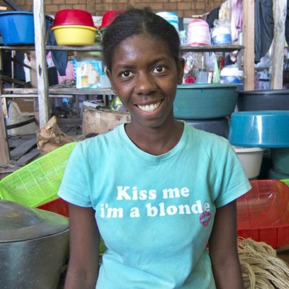 We’re not sure what this girl is trying to express, but the uneven surface of her t-shirt leads us to suspect it has something to do with it.