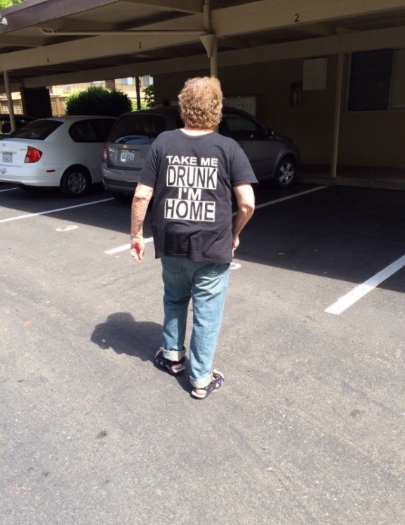 We find this shirt amusing for two reasons: first, it intentionally swapped two words, much as an intoxicated person would.