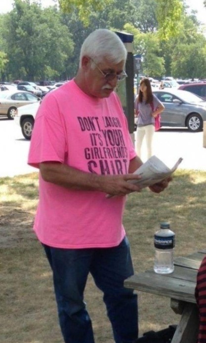 Some amusing t-shirts are lovely when worn by the ‘right’ person, but hilarious when worn by the ‘wrong’ person. In this scenario, the category to which this shirt belongs is self-evident.
