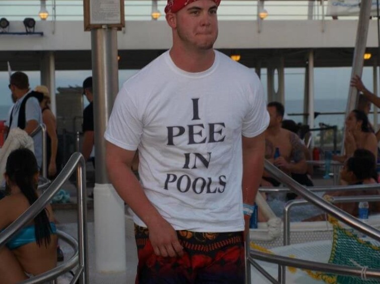 I’m not going to lie, I’m not going to sugarcoat it. The only reason this shirt is funny is because it makes us grimace. What were you thinking, dude, when you put this top on?