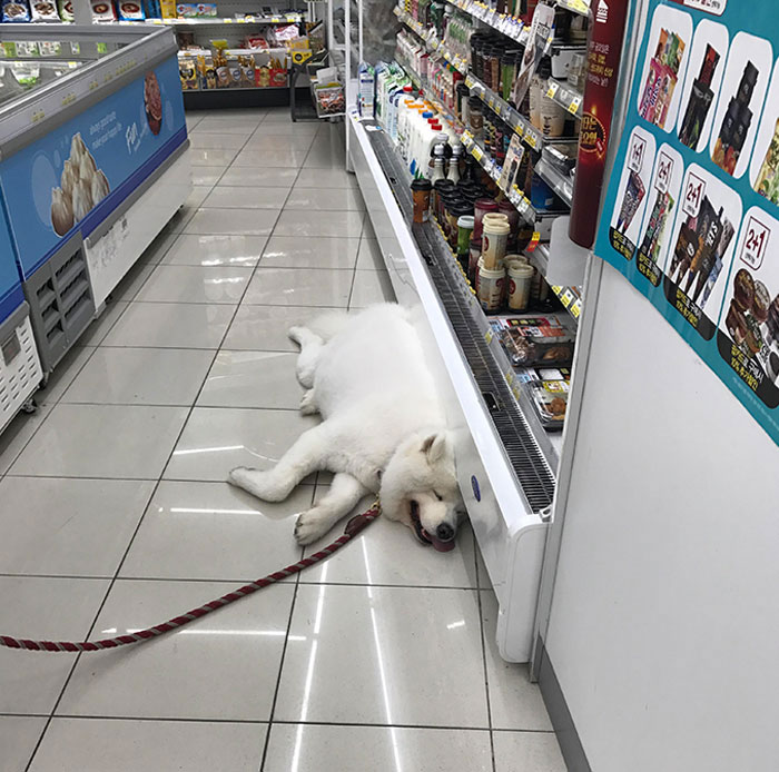 Who says you have to bear the heat this summer when there are endless ways for you to remain cold? Just like this fur baby, you can also go to your nearest supermarket and enjoy the cold. Their air conditioners are always on blast, and the freezer section has a cold atmosphere that will cool you from the inside. However, unlike this dog, you don’t have the luxury to lie down like this dog with your head under the freezer. You can always try, though, and see if the manager comes to say anything to you.